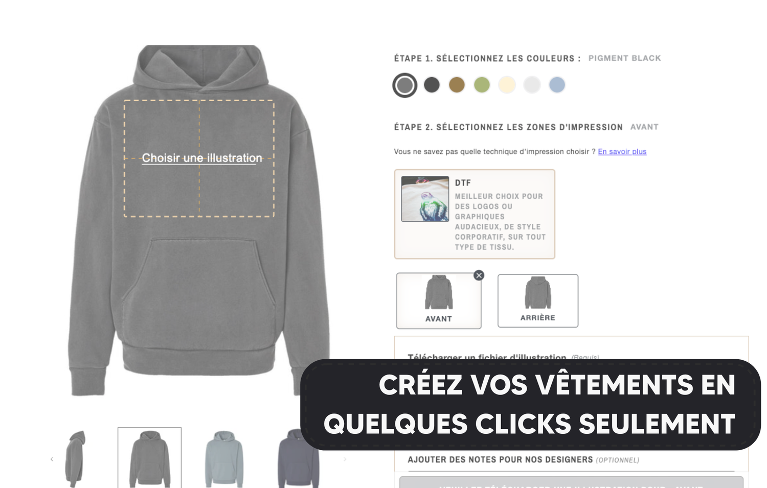 Des vêtements 100 % à ton image, sans quantité minimale.